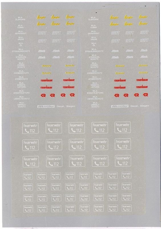 Naßschieber: Diese Naßschiebefolie (auch Decal genannt) können Sie ausschneiden und in Wasser anlösen. Anschließend schieben Sie die Beschriftung in nassem Zustand auf Ihr Modell und lassen sie trocknen. Nach dem Trocknen empfiehlt es sich noch eine Schicht Klarlack darüber zu lackieren.