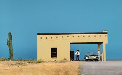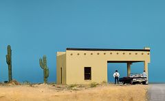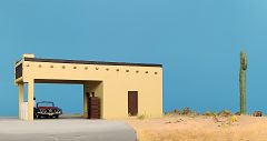 Derartige Gebäude finden sich im gesamten Südwesten der Vereinigten Staaten bis hinüber nach Mexico. Charakteristisch ist das Flachdach, der Putz (obwohl es Holzgebäude sind) und der obere Abschluß der Wände mit den herausragenden Rundhölzern der Dachkonstruktion.