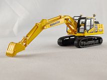 Dieser Kipper hat bewgliche Einzelteile, wie die Knicklenkung und die Kipphydraulik. Aber auch eine Verwindung von Vorder- zu Hinterteil ist funktionsfähig nachgebildet. Besonders filigran ist das Gitter hinter der Fahrerkabine! So ist der Fahrer (und die Scheibe) besser vor Steinschlag geschützt und er kann noch gut durchsehen. Der Kipper ist in Metall-Kunststoffbauweise hergestellt worden. Das Modell diente als Geschenk an die Teilnehmer einer Komatsu Aktionärsversammlung und ist nicht im regulären Handel erhältlich. Auch wir haben nur eine kleine Menge bekommen.